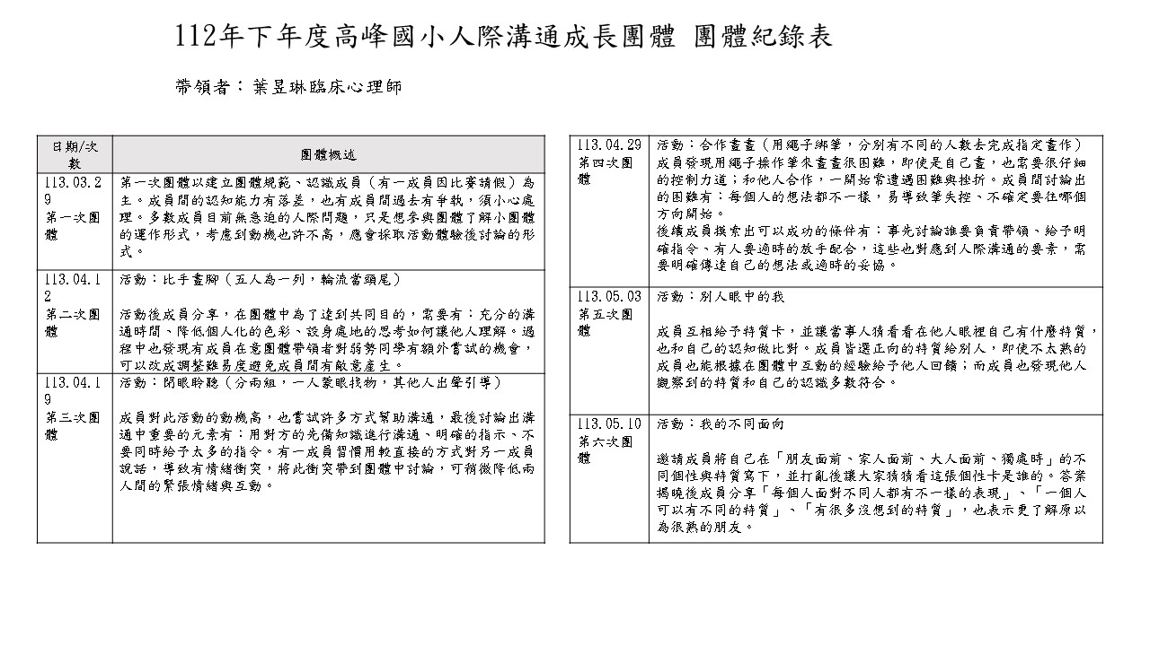 由葉昱琳 臨床心理師帶領,共10次團體課程!